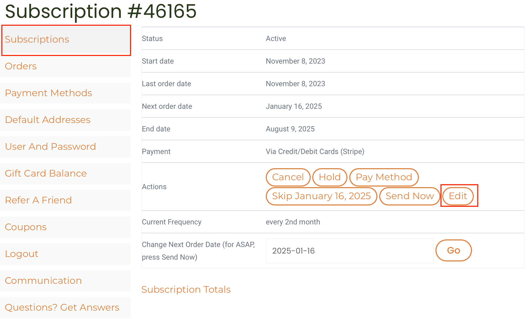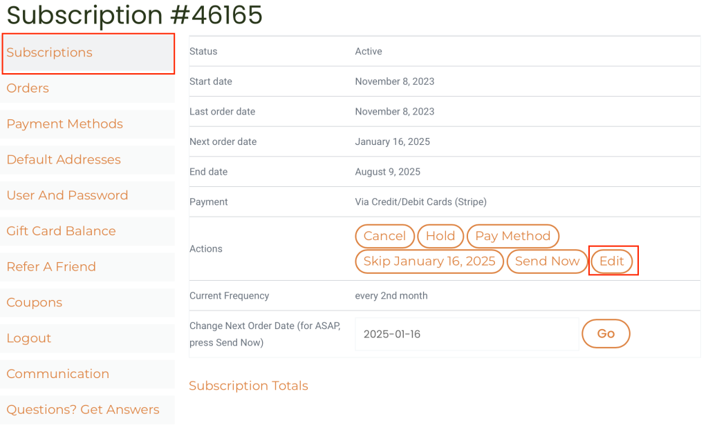 To change the address for the subscription, sign in and go to your account page. Select the subscriptions tab. Then choose Edit.Â